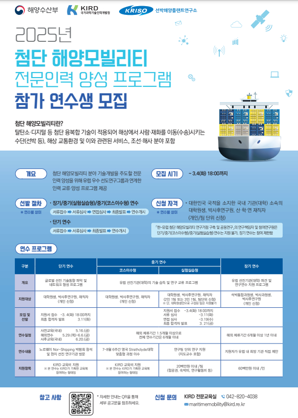 2025년 첨단 해양모빌리티 전문인력 양성 프로그램 참가 연수생 모집