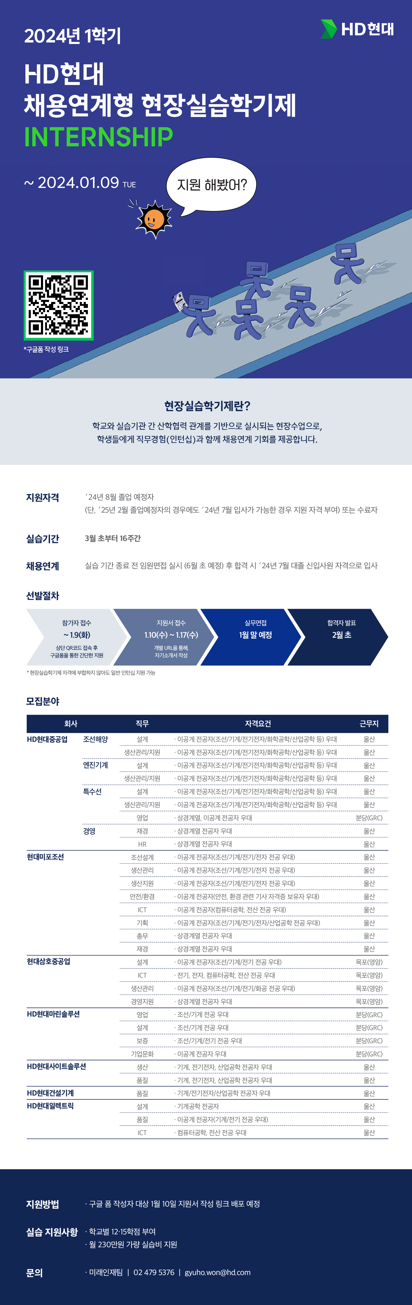 [조선소] 24-1학기 현장실습 참여학생 모집(HD현대그룹)